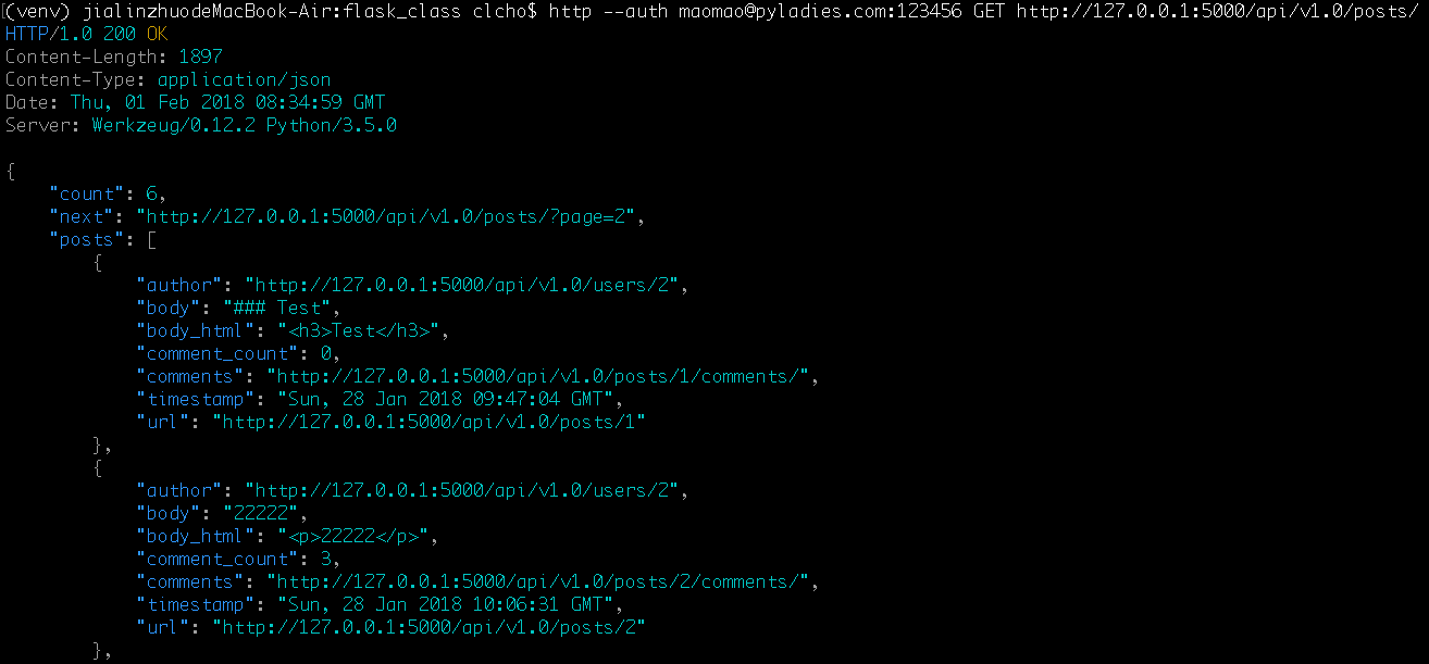 (venv) $ http --auth maomao@pyladies.com:123456 GET http://127.0.0.1:5000/api/v1.0/posts/